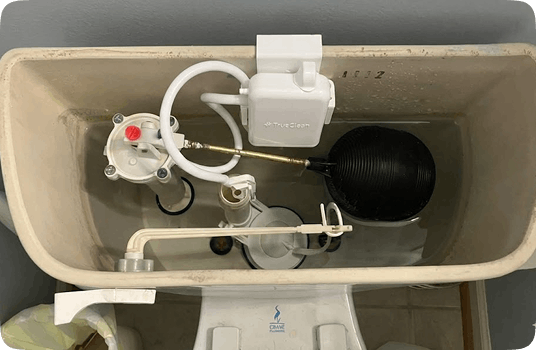 TrueClean's cleaning solution never touches your tank. It flows directly to the bowl—only when you flush so your flappers, seals, and valves stay protected.
